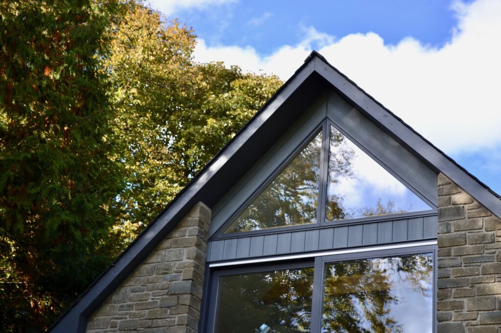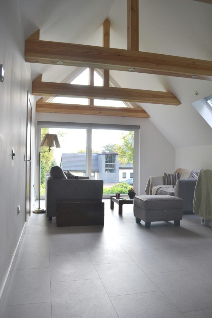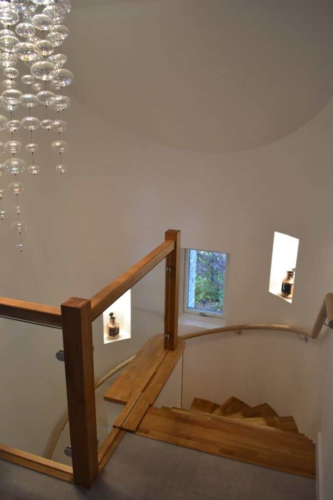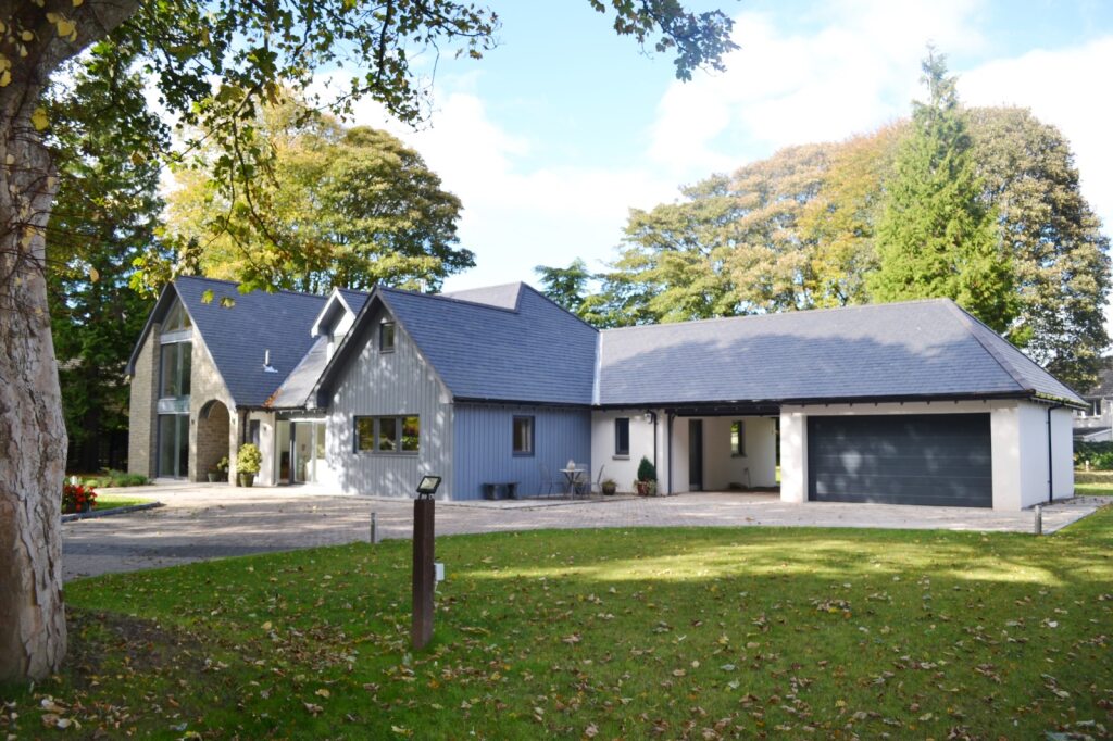 This traditional 1.5 storey house in its mature woodland garden ground setting provides large, bright, airy, open, smart spaces for modern living and cleverly connects the external to the internal.