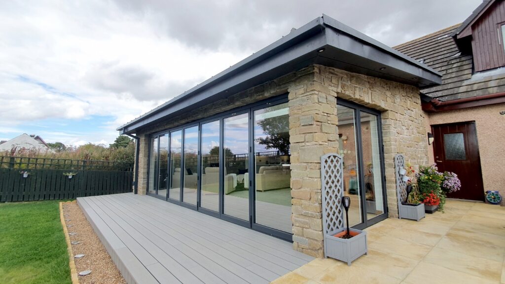 The extension will create an open planned kitchen, dining, and family area by opening up the existing house wall. The new large will windows offer a much better family space as well as a direct connection from the space to the garden via folding sliding doors to allow the room to be opened up to the patio/garden.