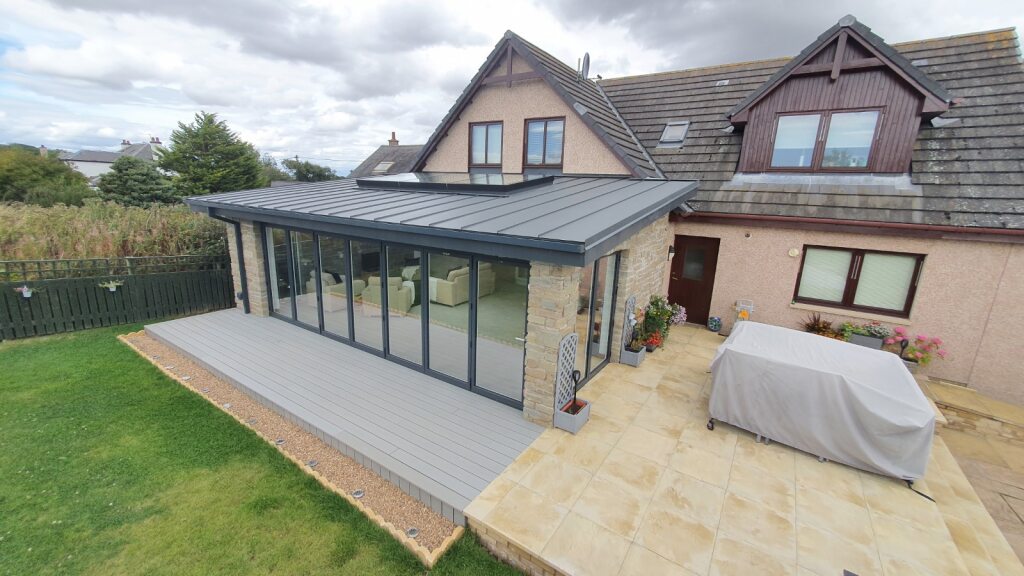 The existing house is a large 1.5 story property with a ground floor conservatory to the south west. The existing conservatory was in poor condition and our brief was to replace it with a modern extension to create a larger open plan space.