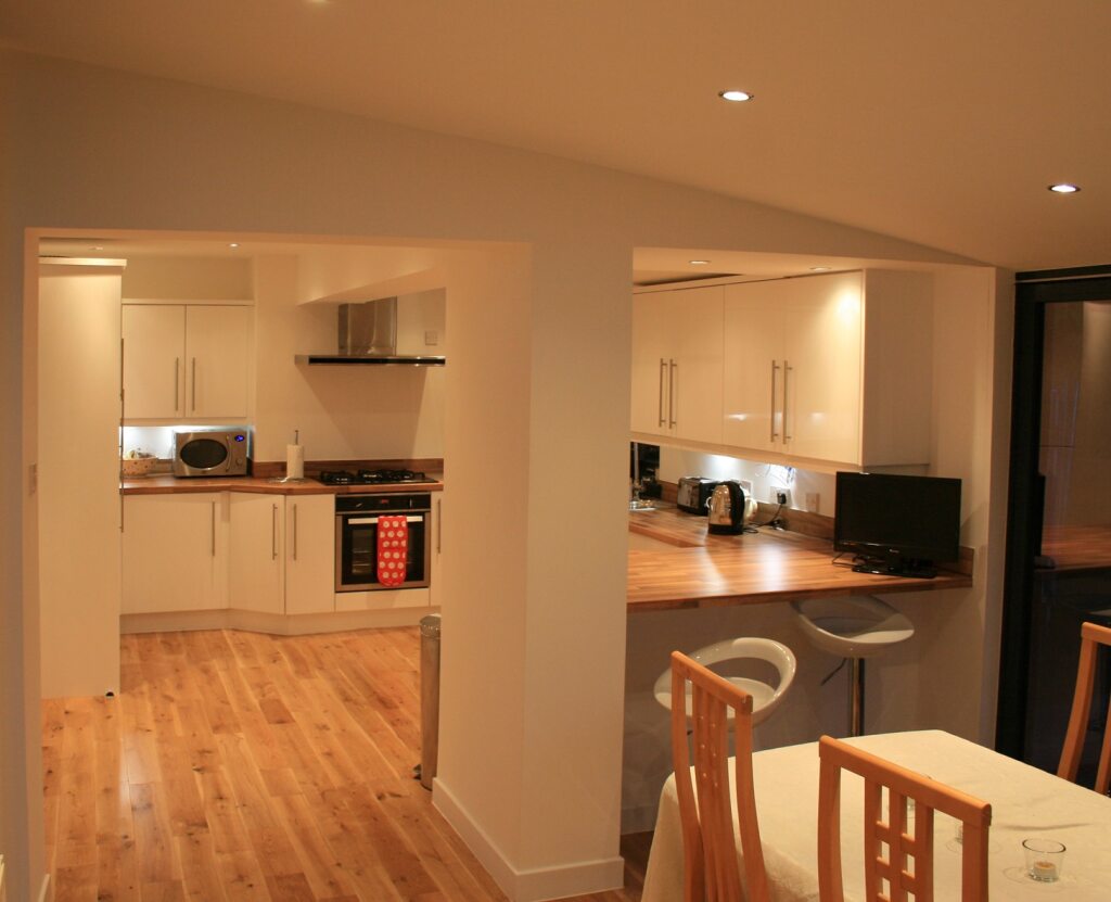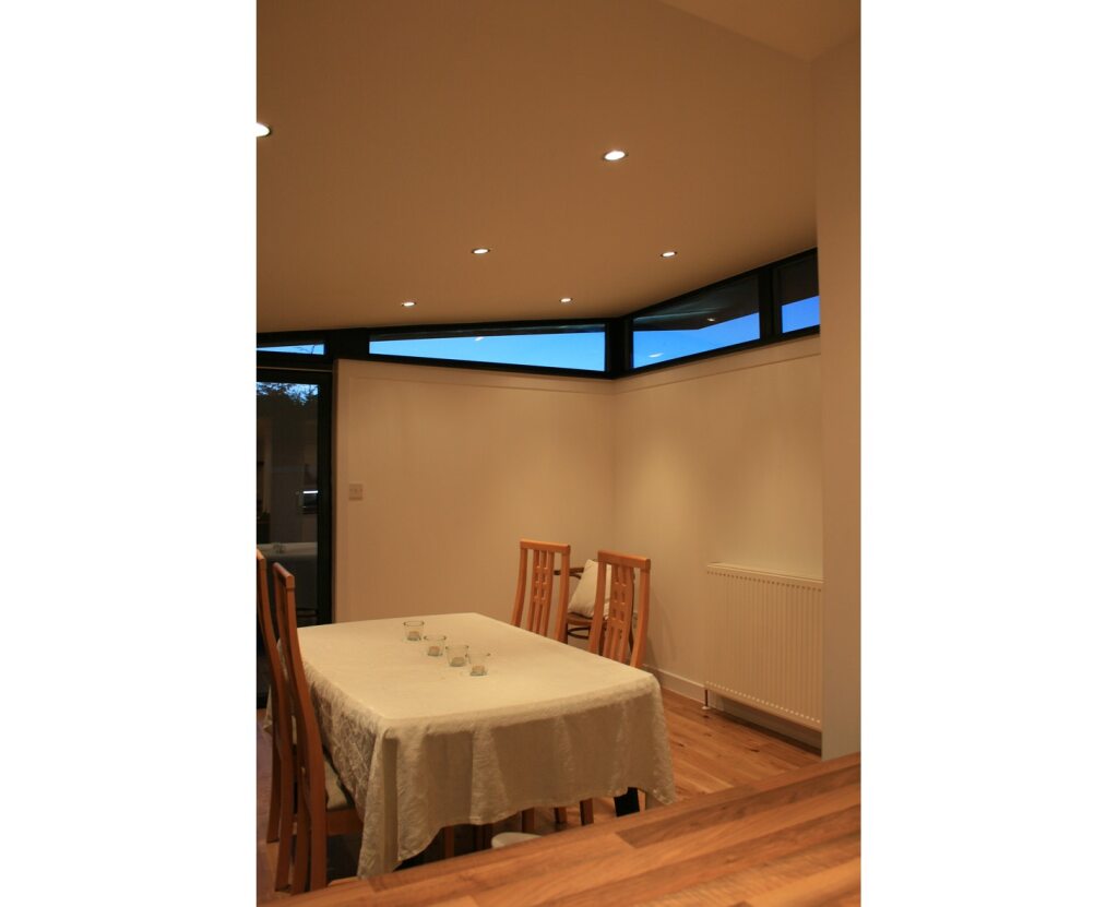This small contemporary extension aims to create a kitchen/dining/lounge space onto the south/west corner of an existing semi-detached property. The existing kitchen was small and the client expressed a desire to extend to create an open plan space to the rear of the property.