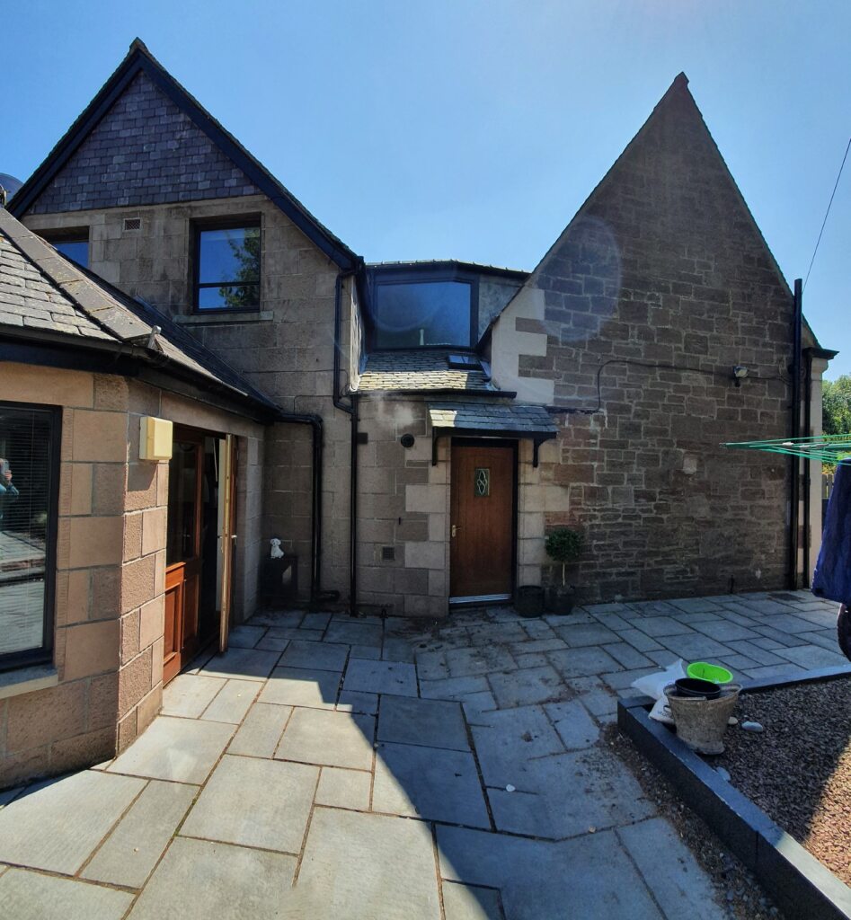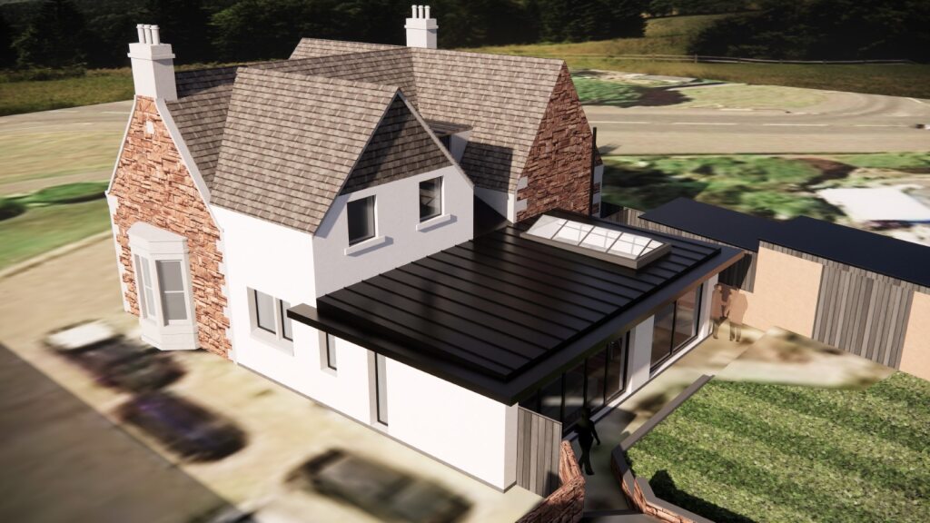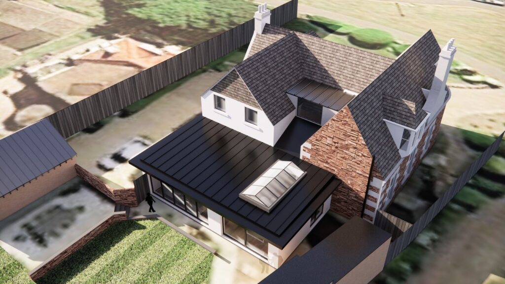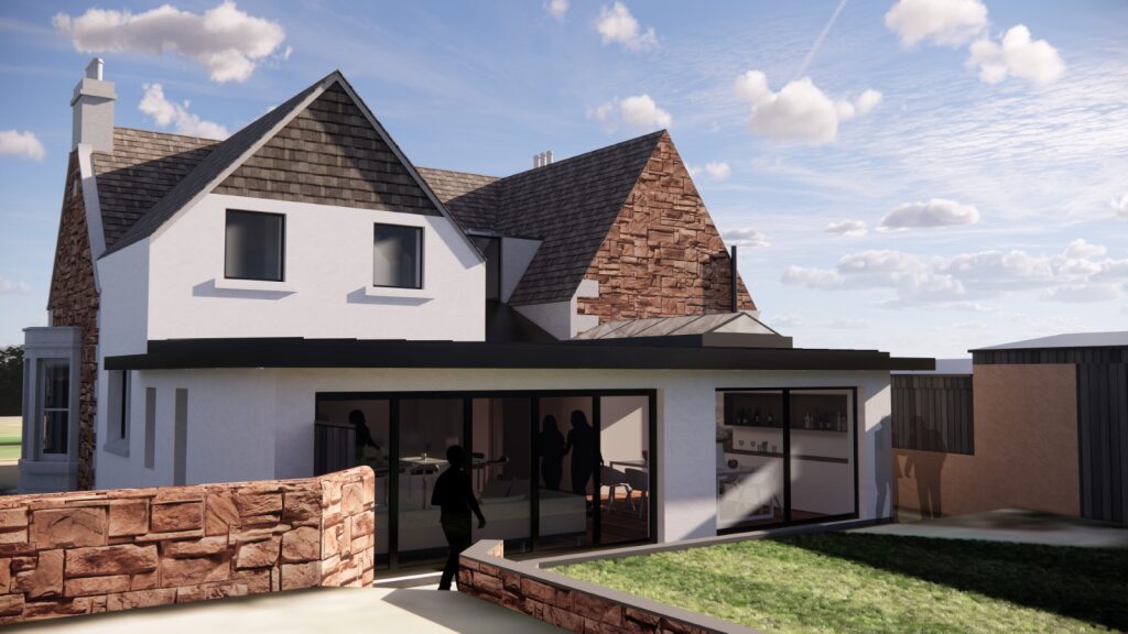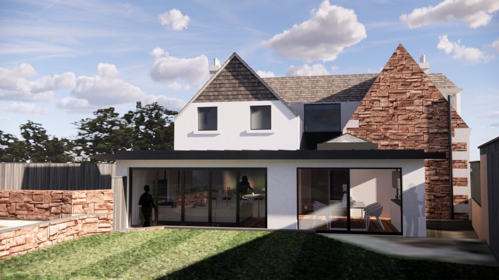 The extension is at the rear of a Listed Historic Villa in Arbroath, and aims to create a new large open plan kitchen/dining/living space at the rear of the property.