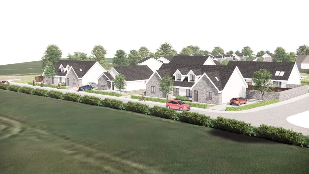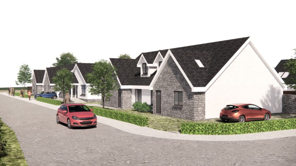 The development provides 6no. different House Types across Private and Affordable Housing including detached, semidetached and bungalow. The properties range from 2 to 5 bedroom. The streetscape has been designed to provide a range of single and 1.5 storey house types, arranged to form a well-spaced out and sympathetic development frontage.