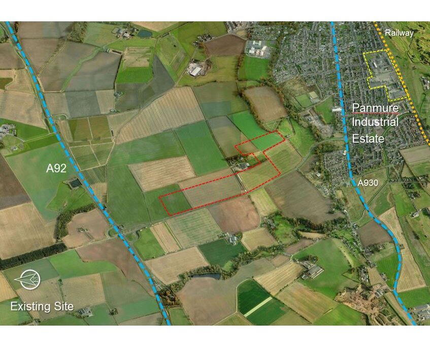 The proposed site (red) not only allows for the immediate expansion of Carnoustie to the North-east but the longer term general expansion and growth of the Town to the North towards the A92.