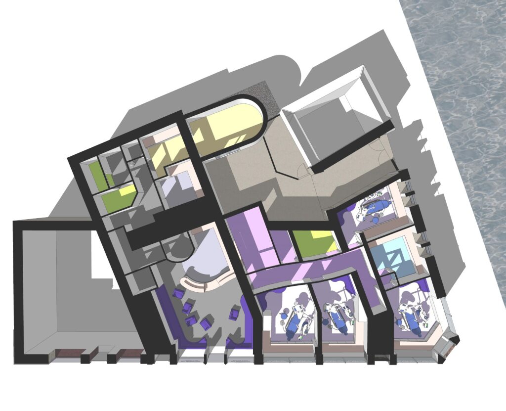 The client is undergoing an expansion of his dental practice, incorporating a re-branding and new corporate identity. The main brief was to create a contemporary dental surgery, extending into the 2 adjacent shop units.
