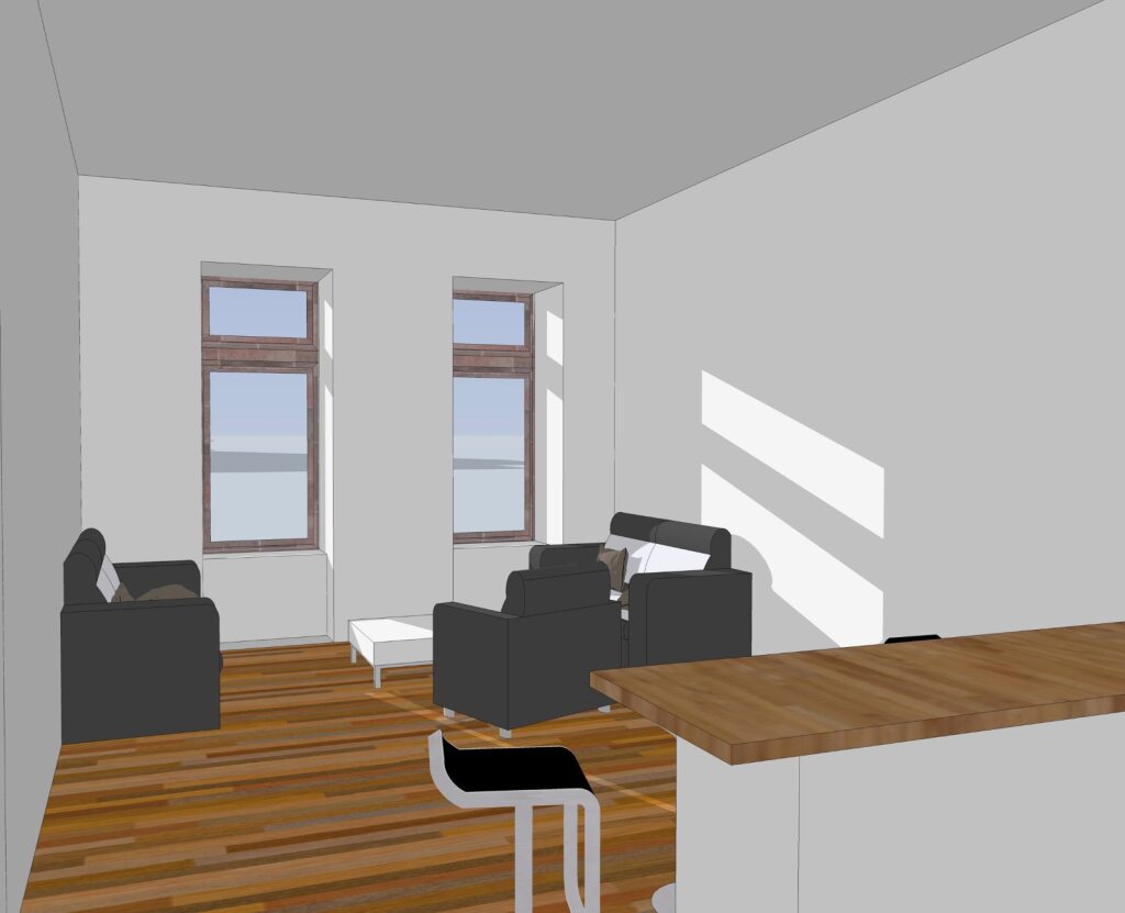 The current proposals are to convert the upper levels into 1-2 bedroom apartments, and to restore and refurbish the existing listed building, keeping all the existing openings whilst repairing the roof and stonework.