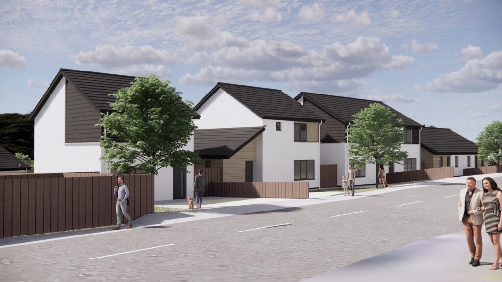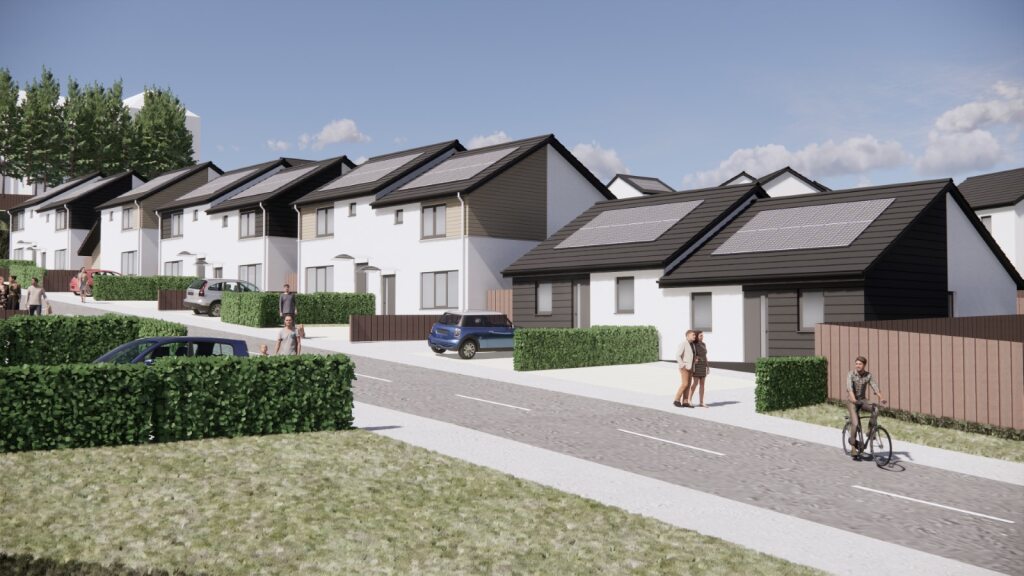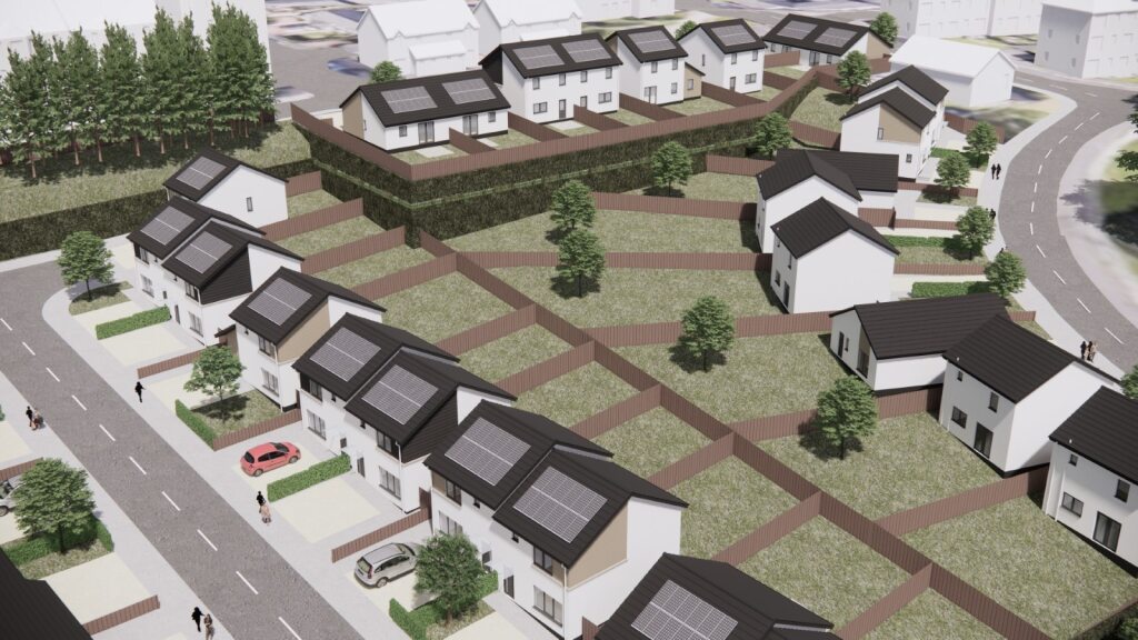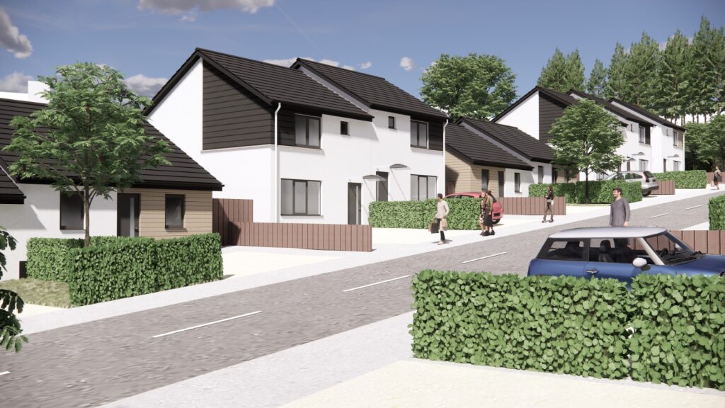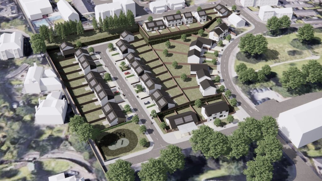The proposal is for 40no. low-carbon houses that would efficient, affordable and quick to construct using off-site technology and methods. The plans are for a range of 2, 3 & 4 bedroom houses consisting of 30no. Housing Association Homes and 10no. private houses.