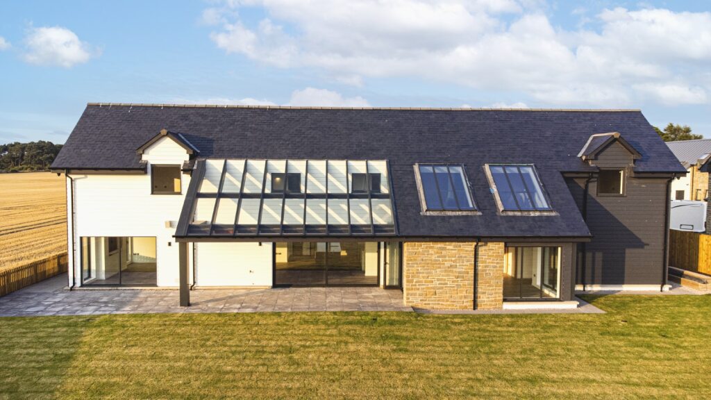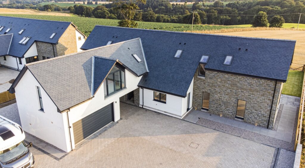 The development is a rural Brownfield site North of Arbroath, and the proposal is to retain & convert an existing steading into 2no. homes, and to construct a further 4no. new build houses.
