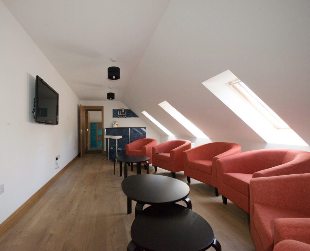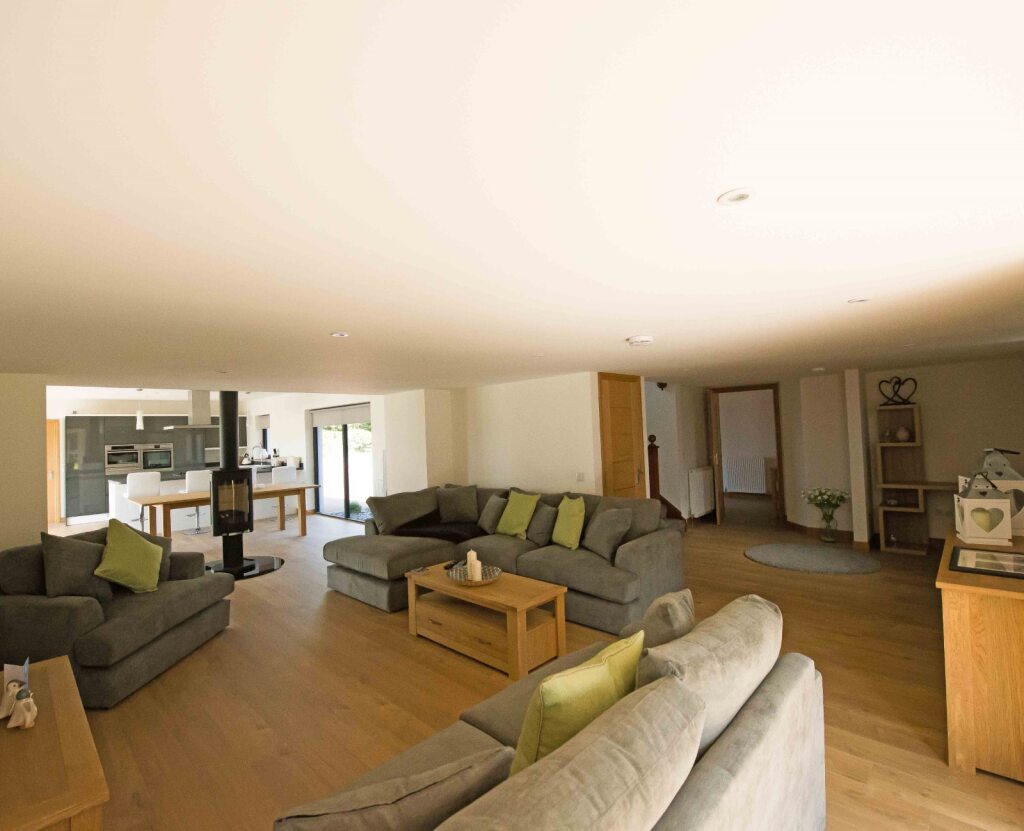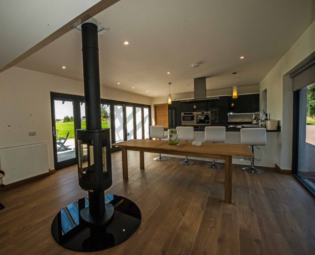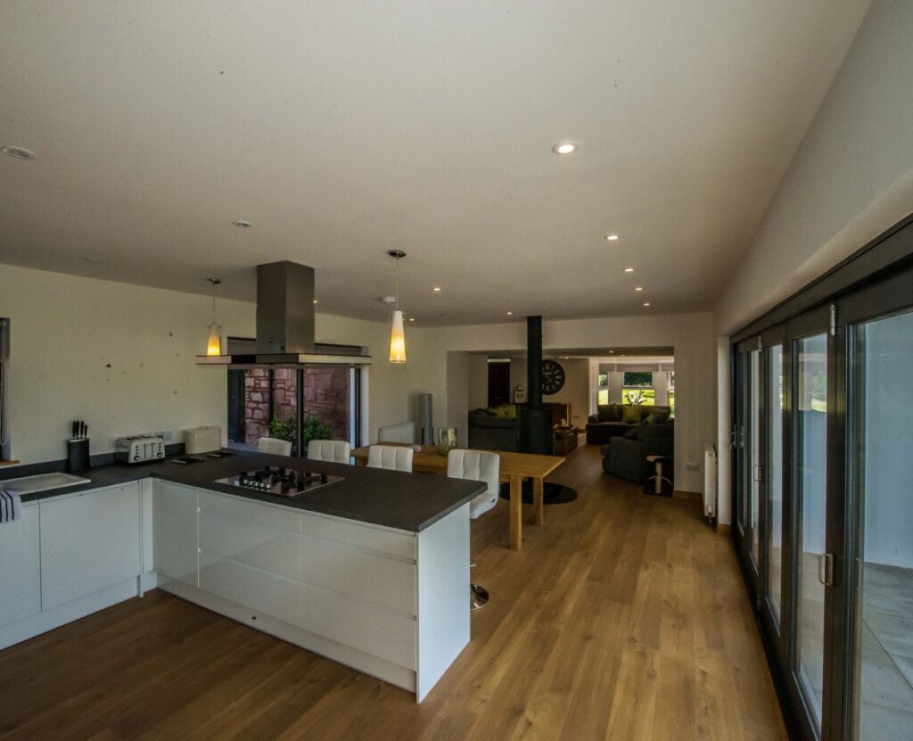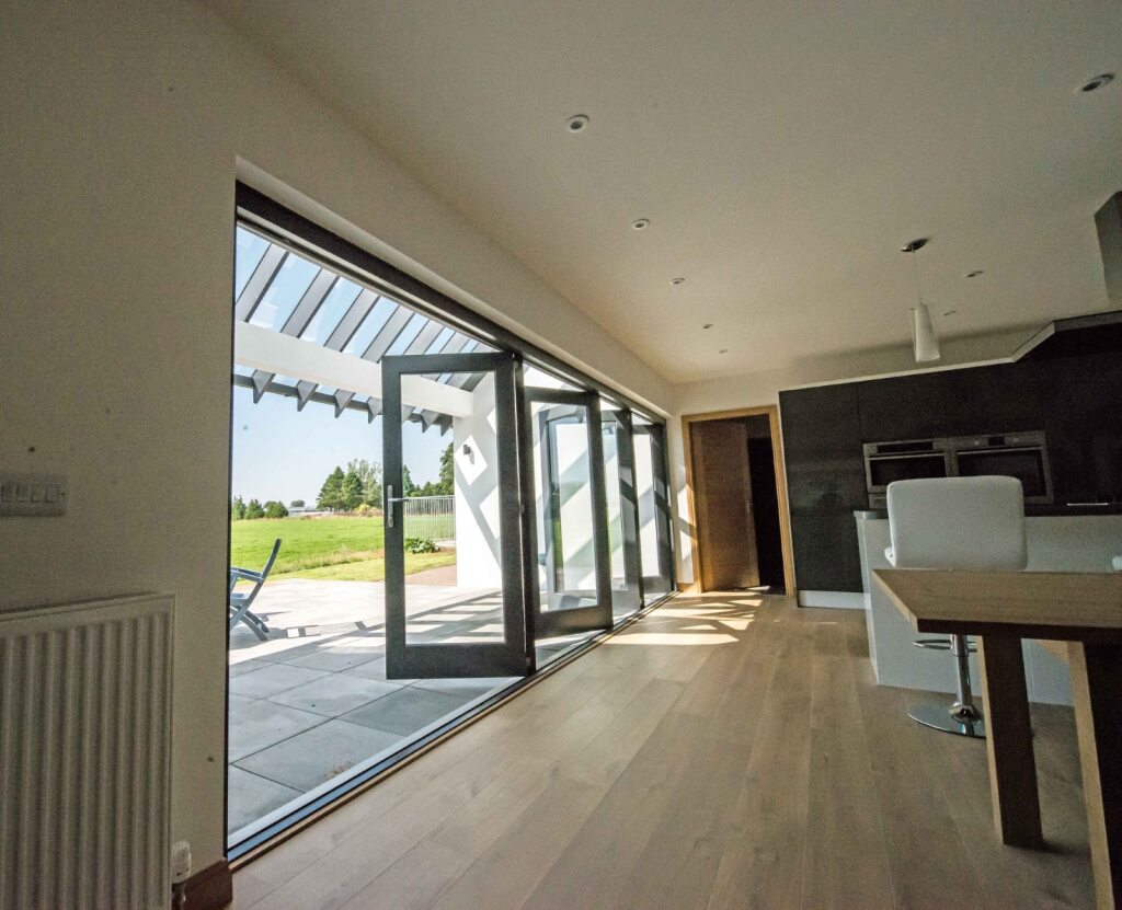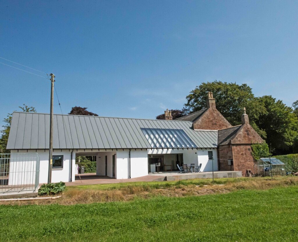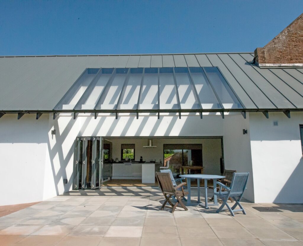 The contemporary extension with metal standing seam roof reflects and compliments the rural location and opens up the views over the countryside to the west and south.